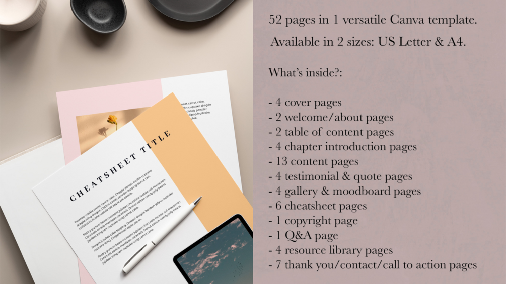 Designed with CANVA users in mind, this template empowers you to bid farewell to the hassle of starting from scratch. Dive into an intuitive drag-and-drop interface, allowing you to customize texts, images, fonts, and colors with ease. Create a product that's uniquely yours by choosing, duplicating, rearranging, and adding new pages.
