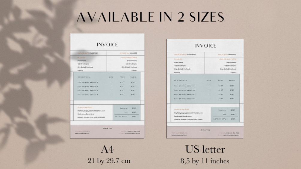 Designed with CANVA users in mind, this template transforms your billing workflow, saving time while ensuring a polished result. Bid farewell to the hassle of starting from scratch; leverage the intuitive drag-and-drop interface to effortlessly customize text, images, fonts, and colors. Craft a distinctive and professional invoice that reflects your brand with ease.